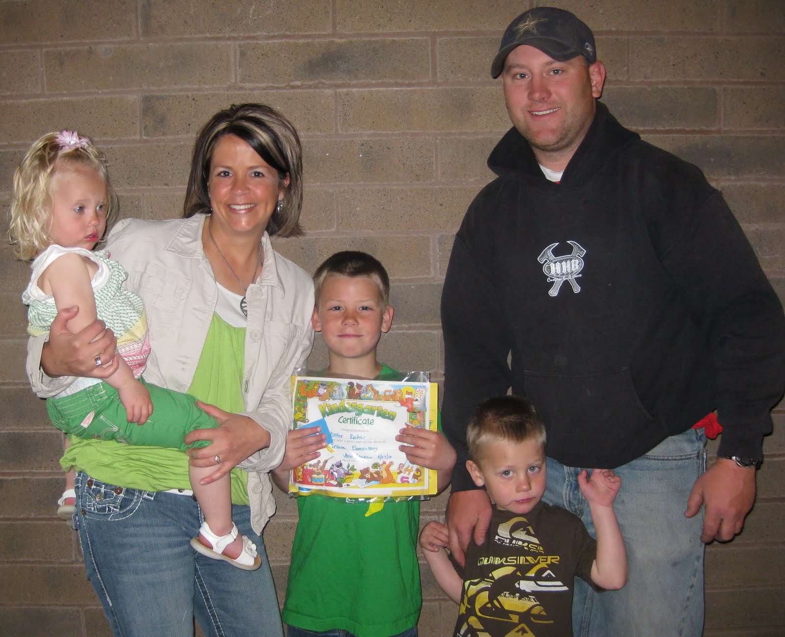It has been a busy spring already, we started out with wrestling, Hunter is such a good little wrestler, he makes me so proud! His season ended early however, when he broke his arm in the match at Firth!- I would be okay is he didn't wrestle anymore, however someone asked him the other day if he was going to keep wrestling and he responded,"Of course I'm going to keep wrestling, I'm like a professional you know!" It was so cute, so it sounds like we will be at it once again next season! The soccer season has also come to an end!- My boys love to play soccer and they are both pretty good players! Easton scored a few goals and Hunter scored 2 or 3 every game! Once again, they made me proud!